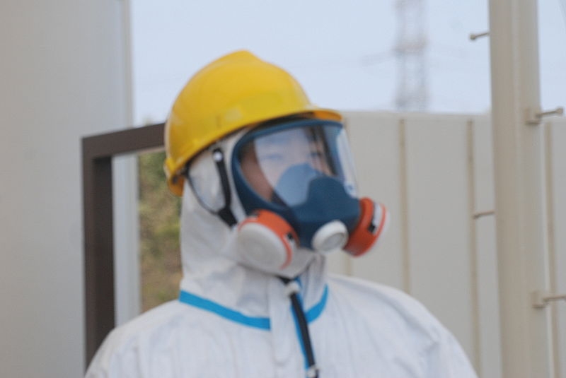 Worker in Fukushima-Daiichi, shortly after the catastrophe. (Image: S. Herman, Voice of America)