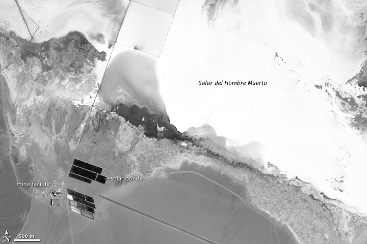 Lithium-Tagebau am Salzsee Salar del Hombre Muerto, in Argentinien (Bild: NASA) Lithium-Tagebau am Salzsee Salar del Hombre Muerto, in Argentinien (Bild: NASA)